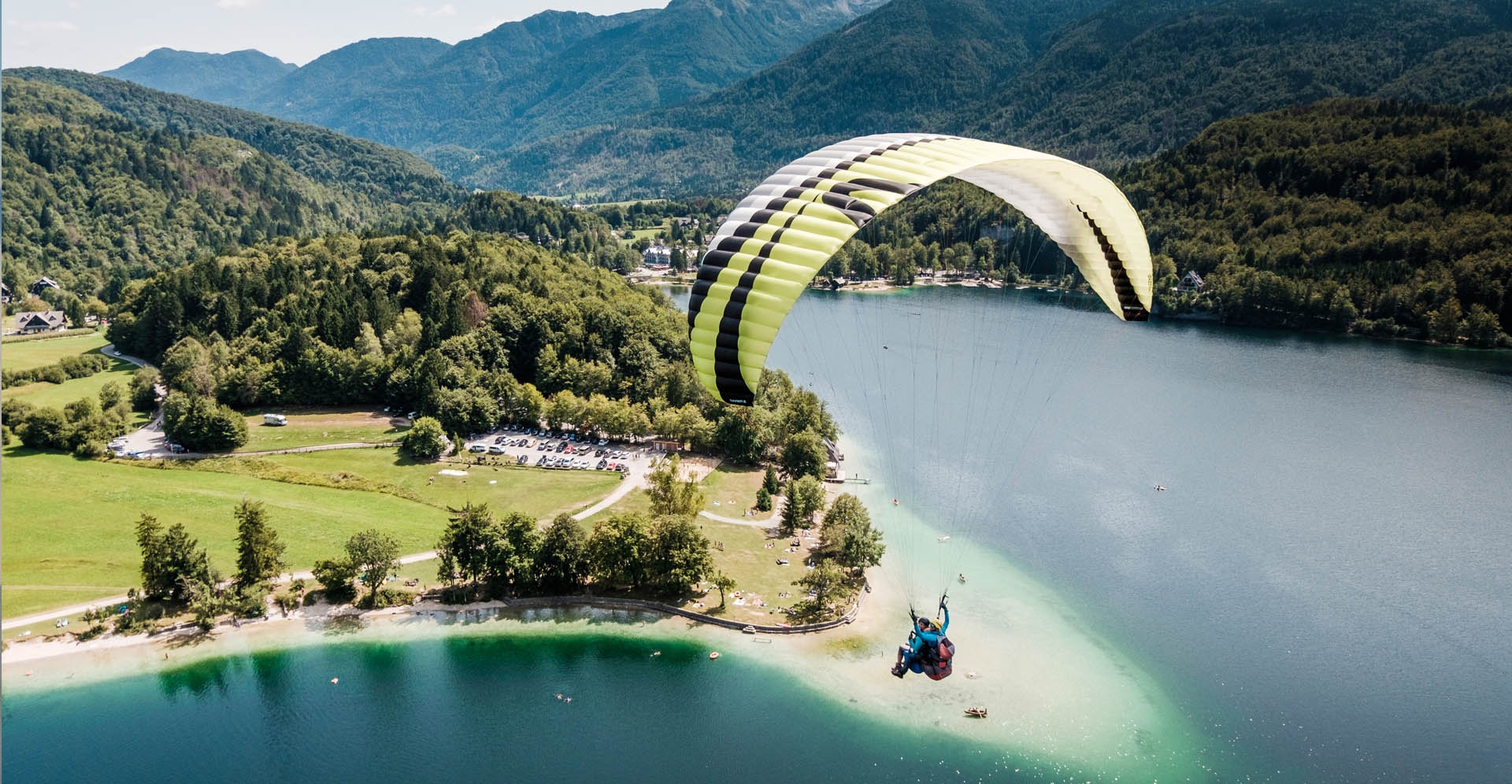 Poudarki: nižji panoramski polet, vzletišče neposredno nad Bohinjskim jezerom, krajši sprehod po pastirkih pašnikih do vzletišča, cenovno ugodnejši polet